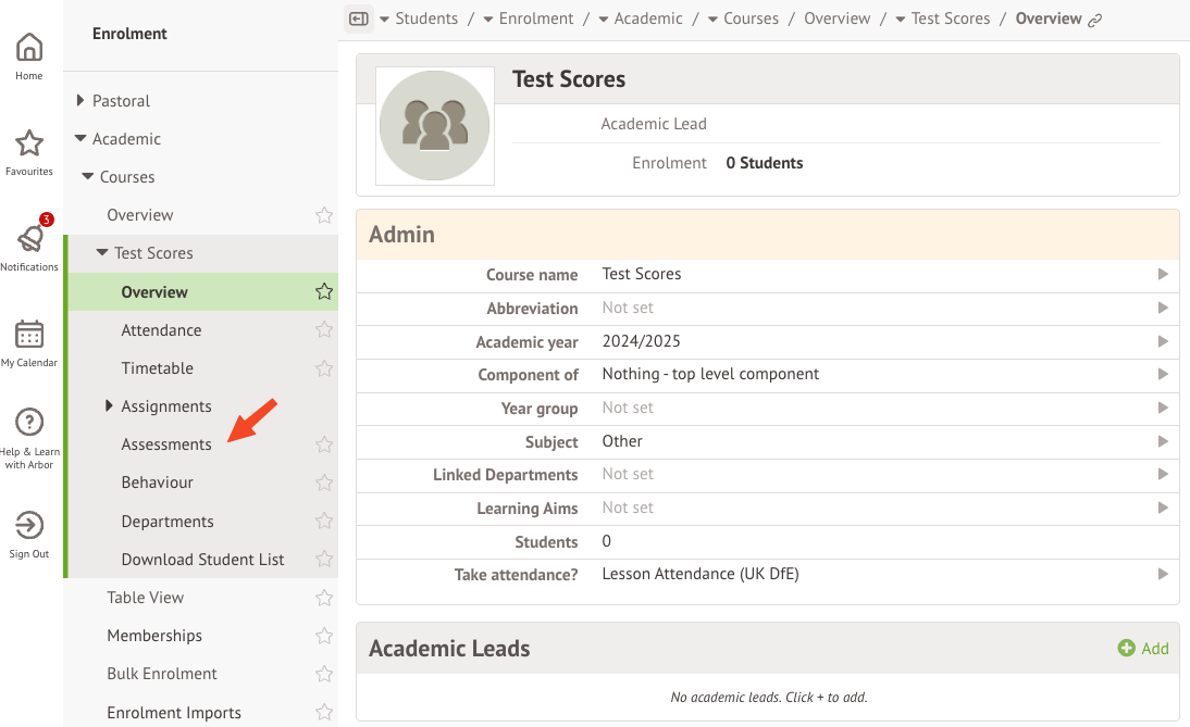 To begin, you will need to setup a 'Dummy Course' on Arbor, follow these instructions on how to build a new course: Set up a Dummy Course. You will need to build your Courses, we recommend naming them 'Test Scores' and setting up Year Group courses. Enrol your students into the correct Year Groups.