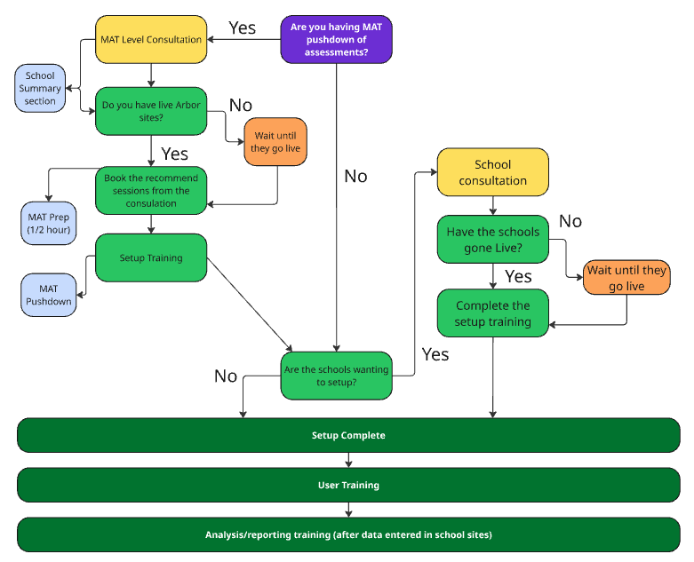 - If your MAT currently uses diverse assessment frameworks, start internal conversations with your decision-making team to define your desired future alignment within Arbor.