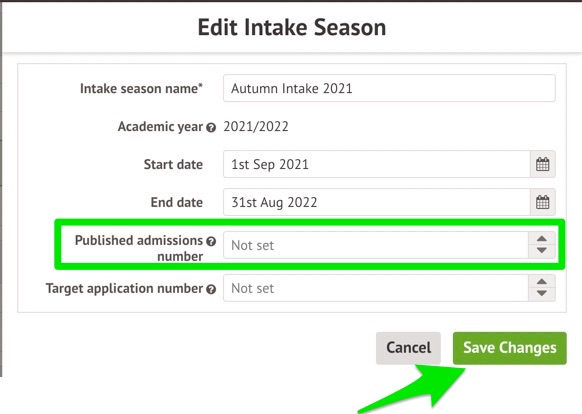 This article explains how to set the Published Admission Numbers (PAN) for a specific intake season in the system. Users must first set up their intake season and then navigate to the Applicants section to enter and save the PAN.