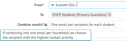 However, when you click the Communications / Notes button to send an email from a Student, Staff or Guardian Profile, there are two fields: