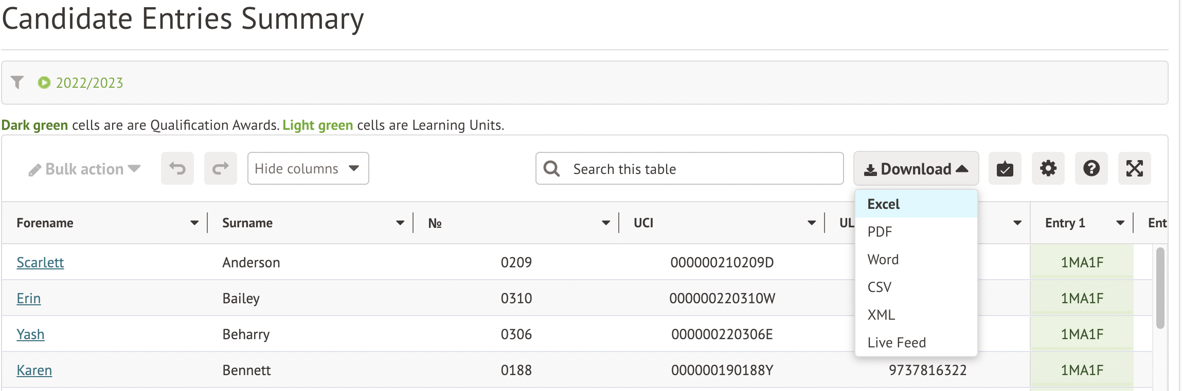 Go to Students > Examinations > Entries > Candidate Entries Summary.