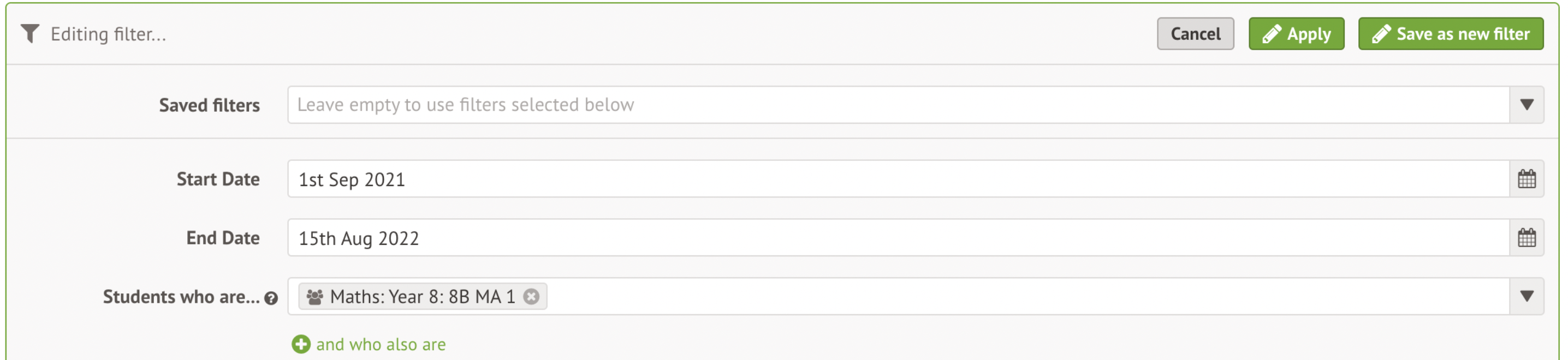 To edit this, select the 'Show data by...' tool and you will be given the list of how the data can be displayed. For example, the data can be shown by each student.