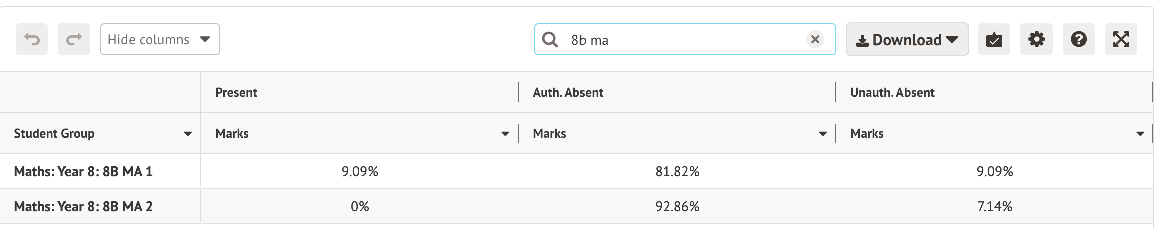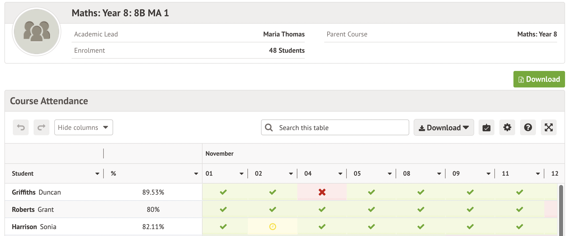 You'll then be able to see attendance for your class alongside other classes so you can compare.