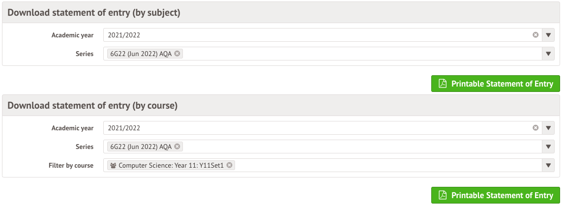 You can report on student entries in Arbor, which you can print out for your staff to sign and confirm. You then use these numbers to inform your exam fees and costs reporting.
