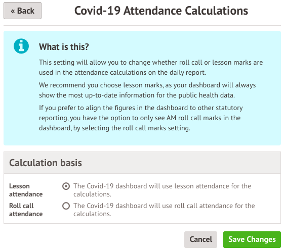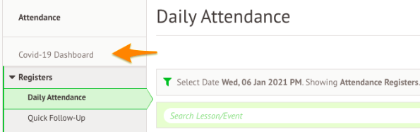 Your covid-19 dashboard will display lesson attendance for each student by default. This means that if a student misses registration but is present in school, you'll be able to report them as present.