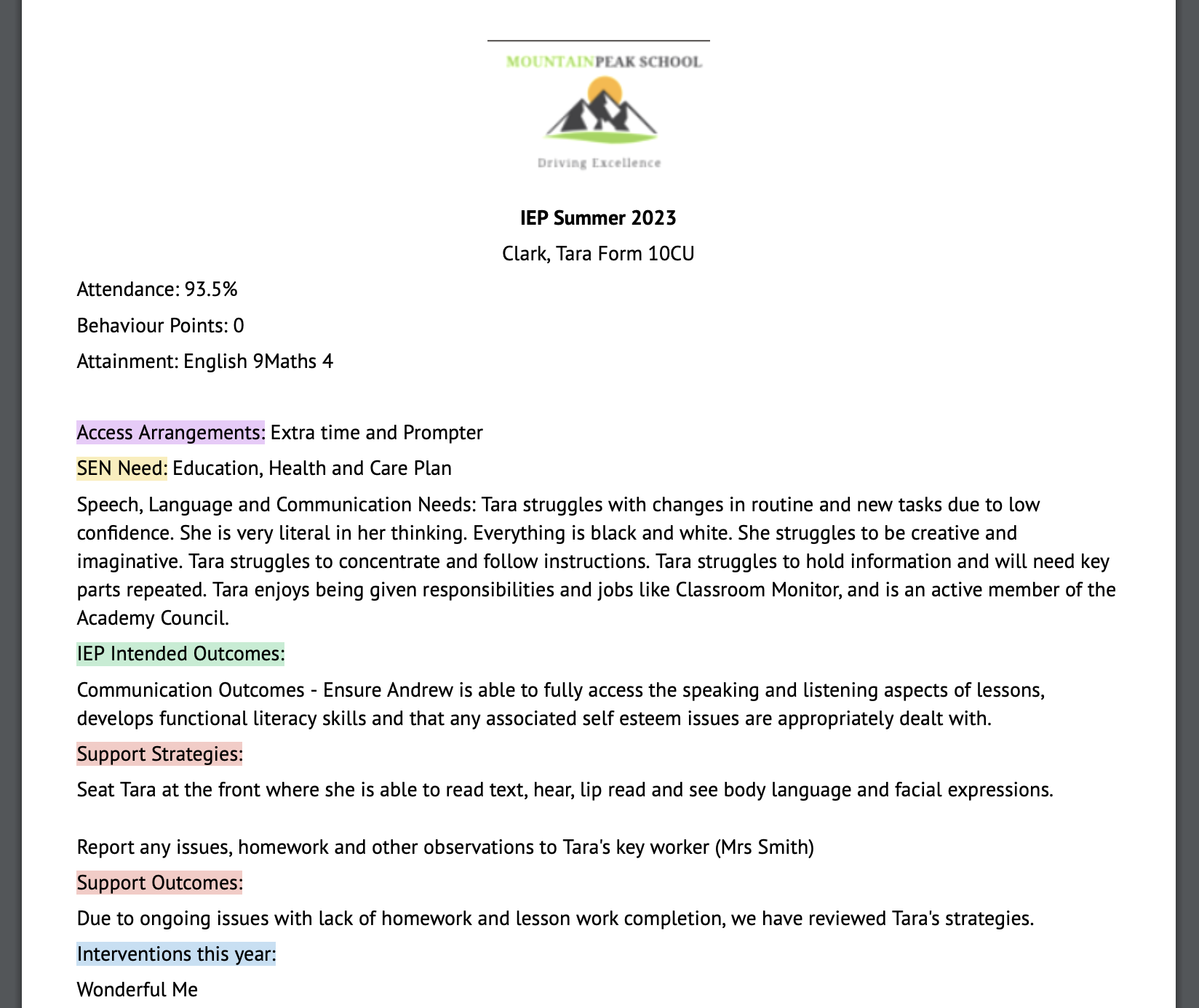 For details on our built-in reports on students with SEN, see this article: Seeing students with Special Educational Needs