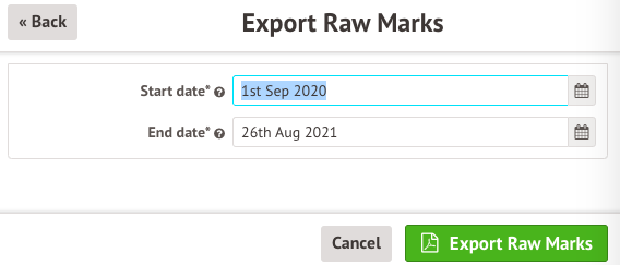 3. Click the Export Raw Marks button to download a spreadsheet with all the marks and comments on it.