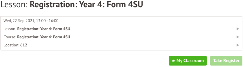 Registers can be opened by teachers and other staff up to one hour before the class is scheduled to start from the Lesson Dashboard or Daily Attendance pages. Until then, the Take Register button on the Lesson Dashboard will not be clickable. You can access My Classroom, but not take attendance yet.