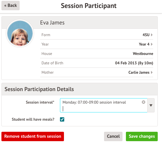 Click the red button in the slide over. Please note: this will remove all participation for the session. If a student was signed up to more than one time interval, it will remove them from both.
