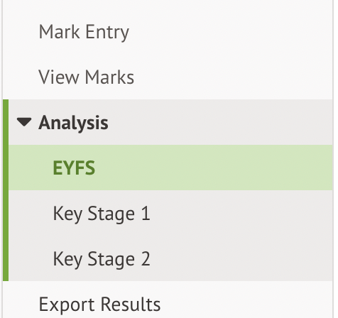 We set whether you can do analysis for DfE statutory assessments depending on the students at your school. If you have primary-age students in your school, you should be able to see the Analysis section in Students > Assessments > DfE Assessment.