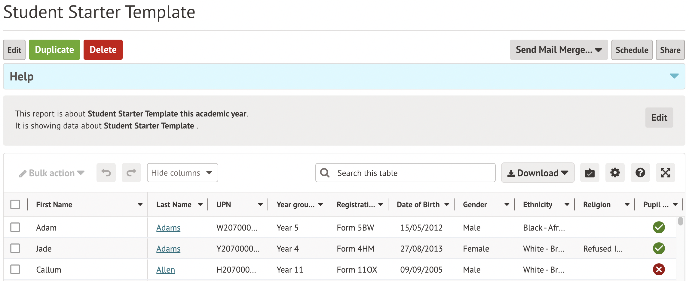 Looking for a list of your new students? Try our Joiners page: See students who have joined my school between two dates