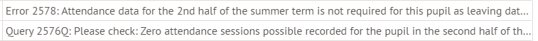 If either error/query still flags, this may be due to blank marks recorded for the student, such as if you stopped inputting attendance marks for the student before they were unenroled.