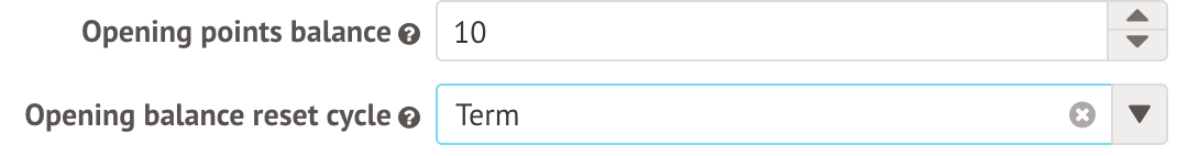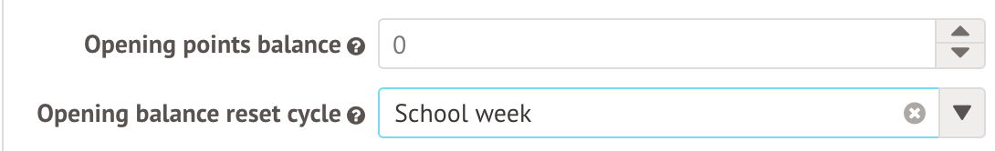 The Opening points balance and Opening balance reset cycle determine what happens on the Totals report in Students > Behaviour > Point Awards > Totals. It does not pick how frequently you'd like the points to reset.