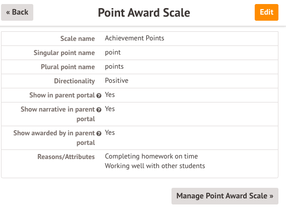 This article explains how to add more reasons or attributes for behavior points in a Point Awards Scale. It guides users through the steps of accessing the Point Awards tab, managing the scale, and adding attributes with default point assignments for students.