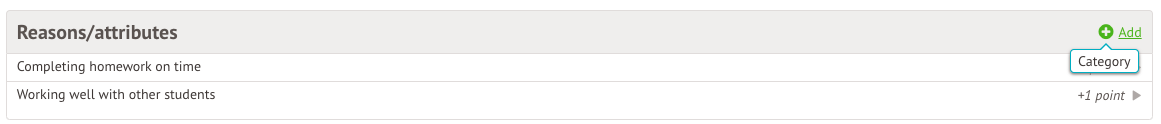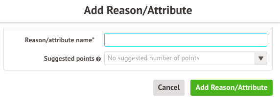 3. Click +Add to add attributes and choose how many points by default should be assigned to the student(s) when this reason is chosen.