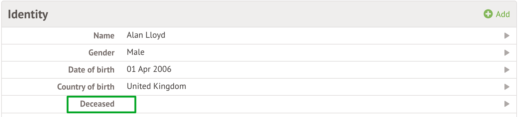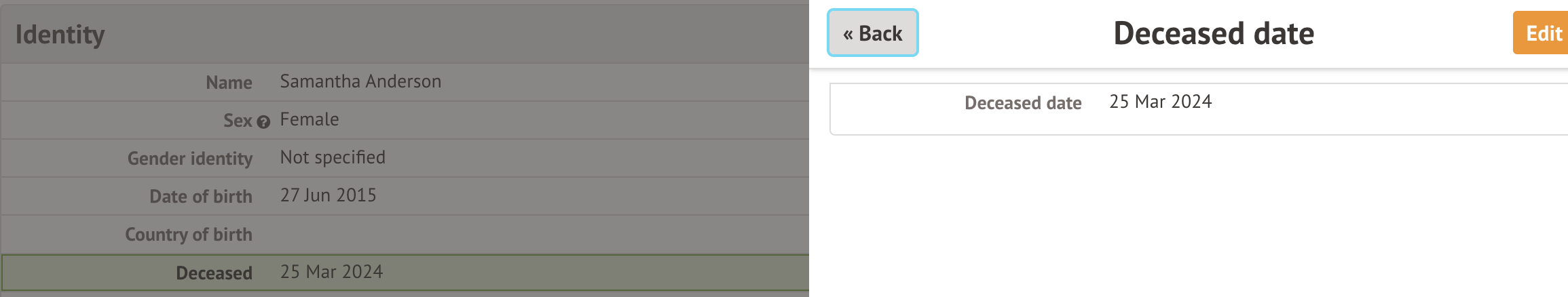 To undo marking them as deceased, remove the Date of death and make sure the tick box is unticked, then click Save Changes.