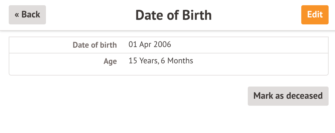 A pop-up will ask you to confirm for the final time that you wish to mark this profile as deceased as this cannot be undone in the Date of birth field on the profile.