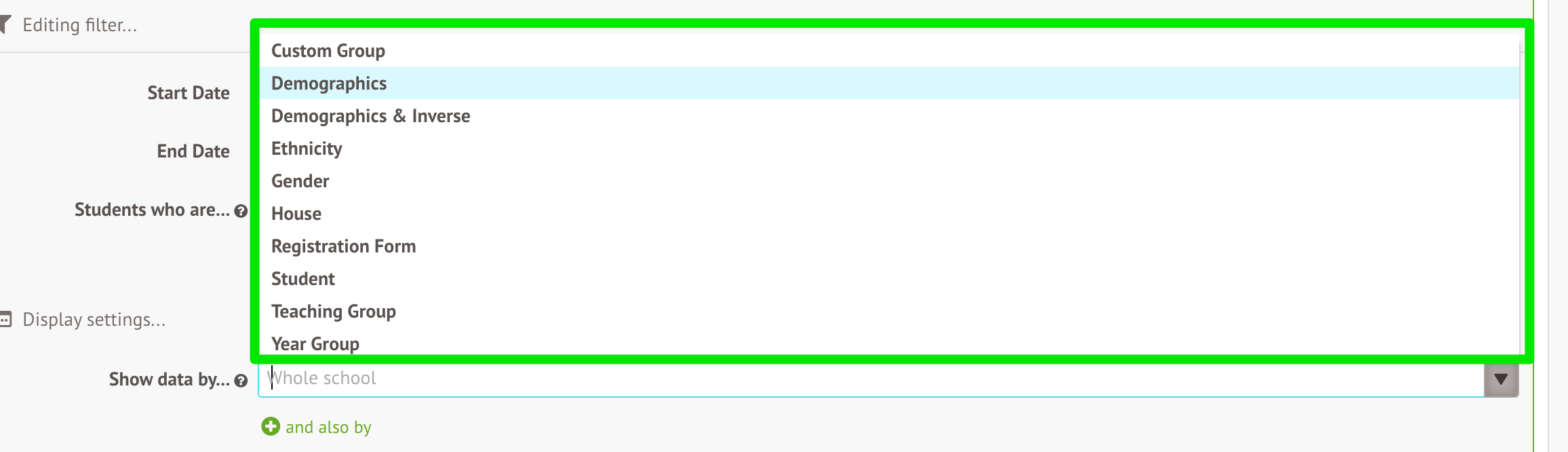 Top Tip: Want to only see what percentage of a certain year group are Pupil Premium? Type into the Students who are box to select them first!