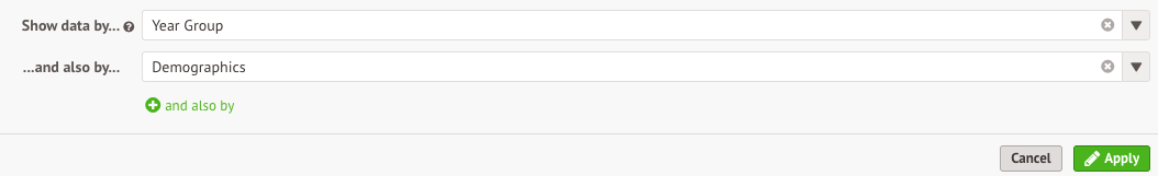 If you want to see breakdowns of multiple student demographics, click into the filters, and select to show data by Demographics, then click Apply.