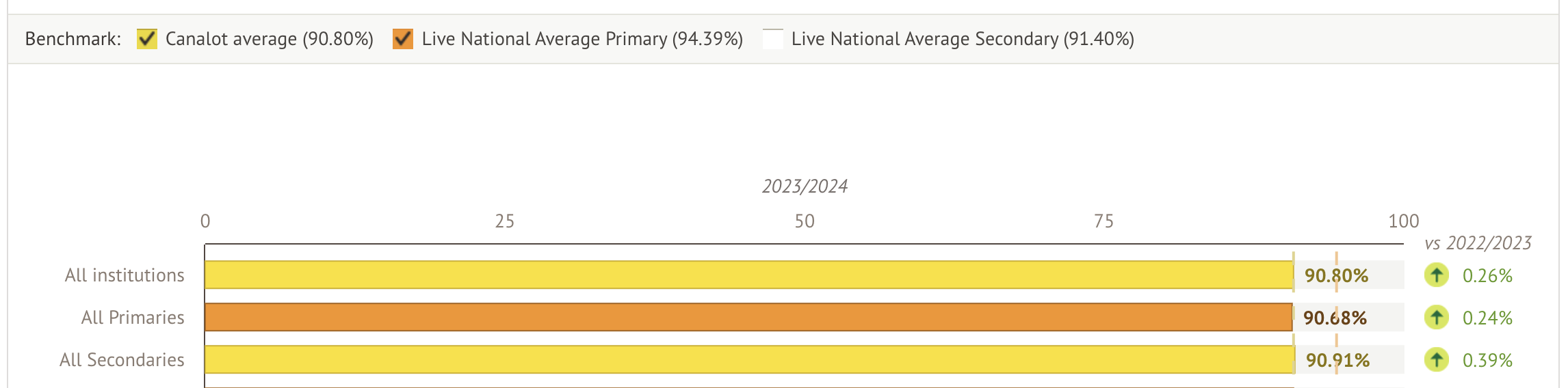 You can also see national average statistics taken live from attendance marks across all Arbor schools for the current academic year.