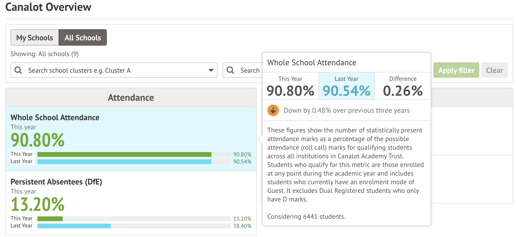 You can view the figures across your whole MAT/LA MIS, or for just the schools you are associated with.