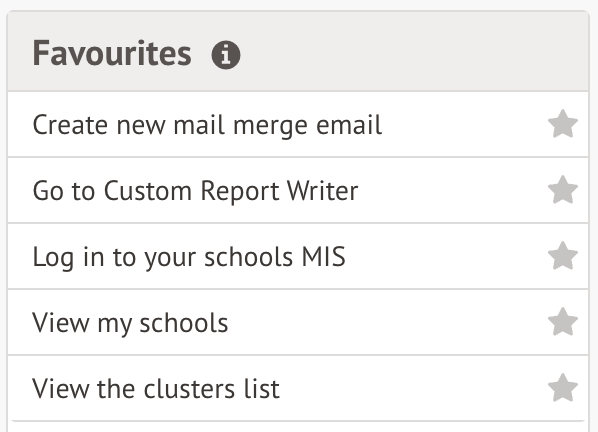 For MAT users, you'll have one list of Favourites on MAT MIS, and if you are able to log into the School MIS from the MAT MIS, another set of customisable favourites on the School site.