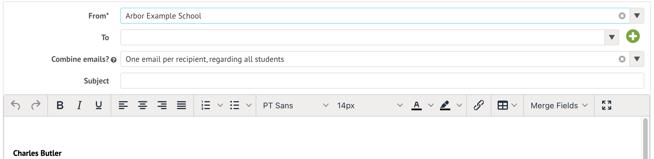 Please note that this is only currently available on School MIS communication drafts, not MAT MIS email drafts.