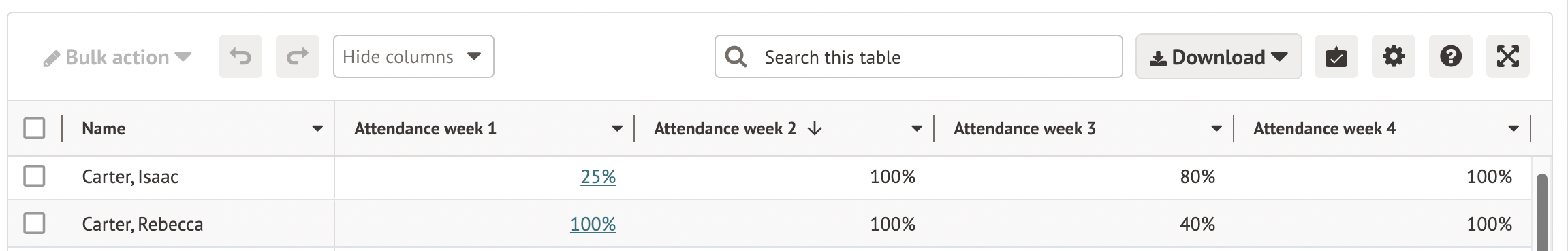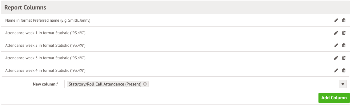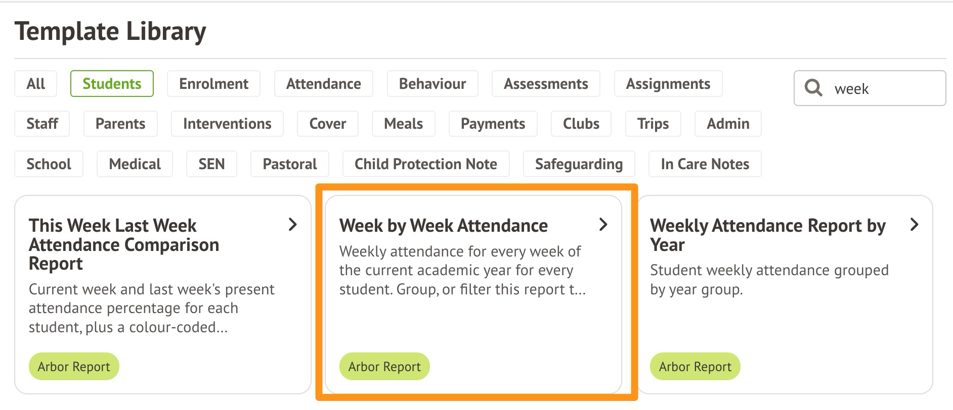 The quickest way to create a week-by-week statutory attendance report is with a template from the library, as this saves you from adding each week as an individual column.