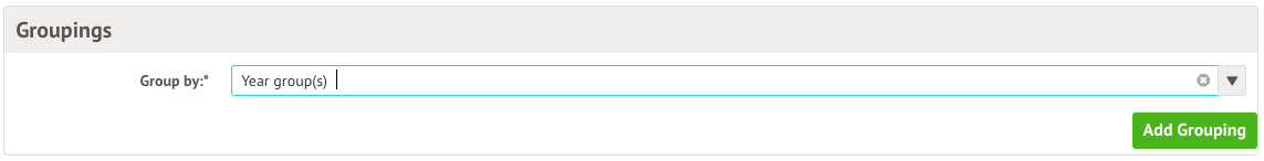 Add in any groupings you need, for example, if you want to view the attendance broken down into year groups rather than for individual students.