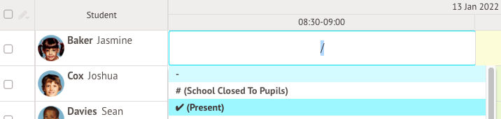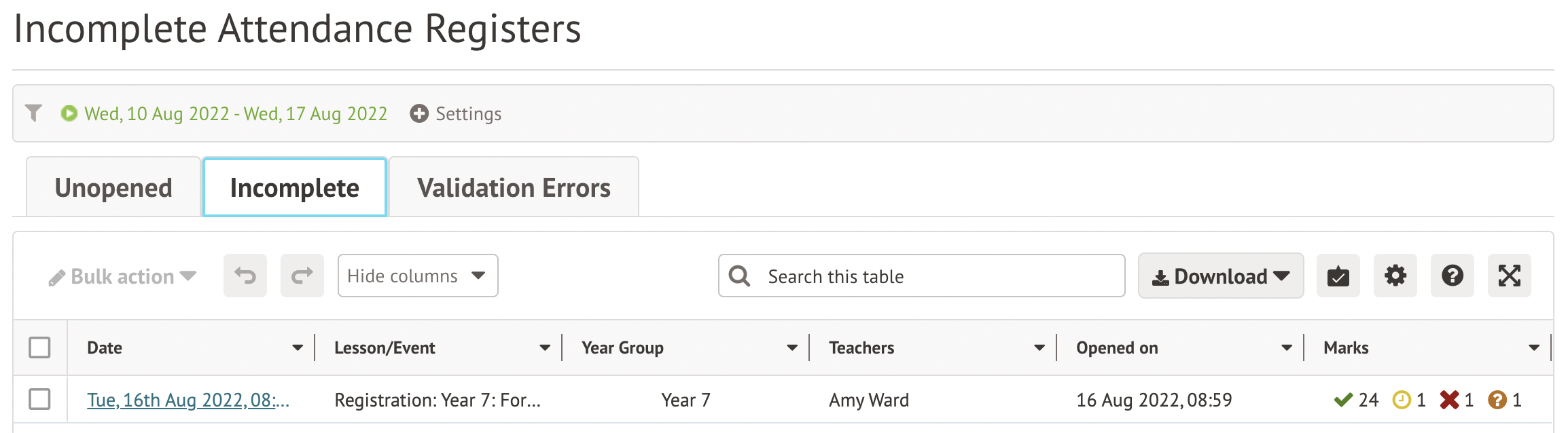 Any marks set as - will show as missing marks, and will cause the register to flag as an incomplete register. We recommend putting in the appropriate attendance code to mark them as complete, rather than leaving the marks blank.