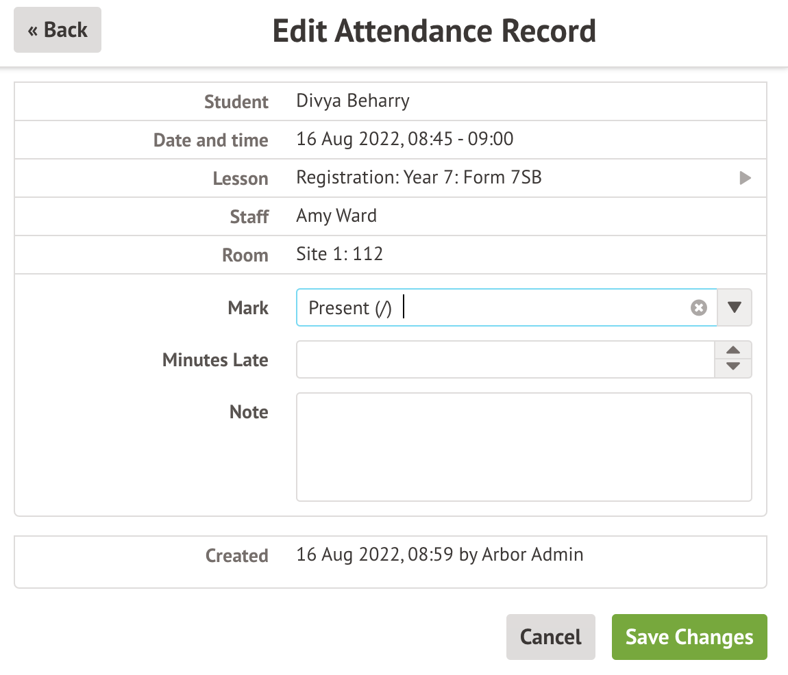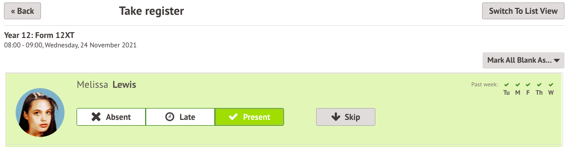 This process is for removing an attendance mark added into a register for a student by mistake. If you want to remove all marks recorded for a student, please follow these instructions instead: Removing all attendance marks for a student