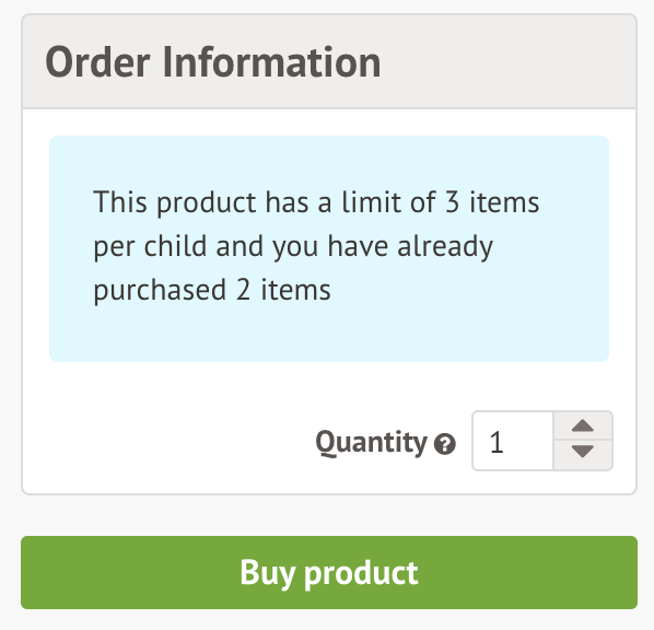 If a parent has already purchased the maximum number of items allowed for a student, they won't be able to purchase more.