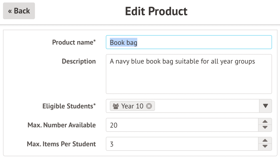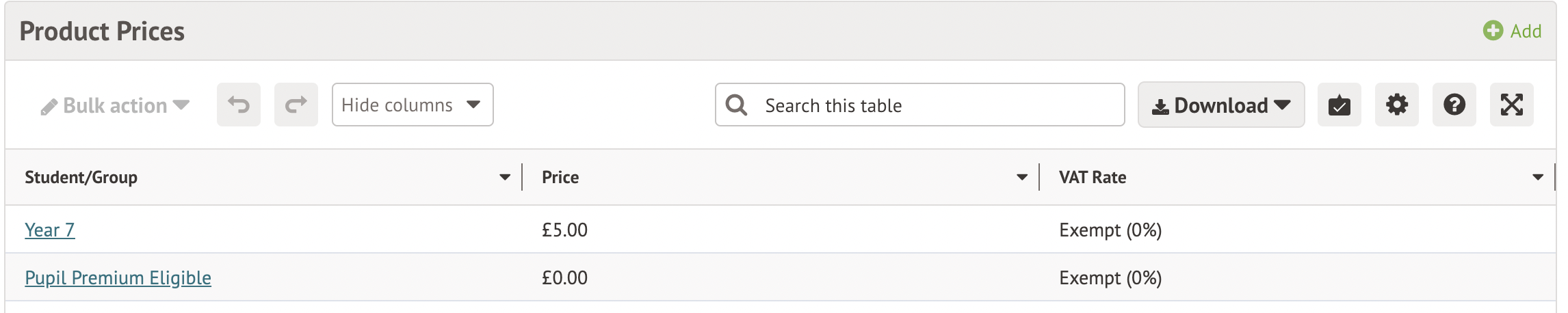 In this example, students who are in Year 5 and not Pupil Premium would not be able to purchase this item. Follow the instructions here to add prices: Step 3 - Add item prices