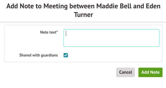 When you click to Add note, you can select if this is a private note or if it is shared with the Guardian using the tick box.