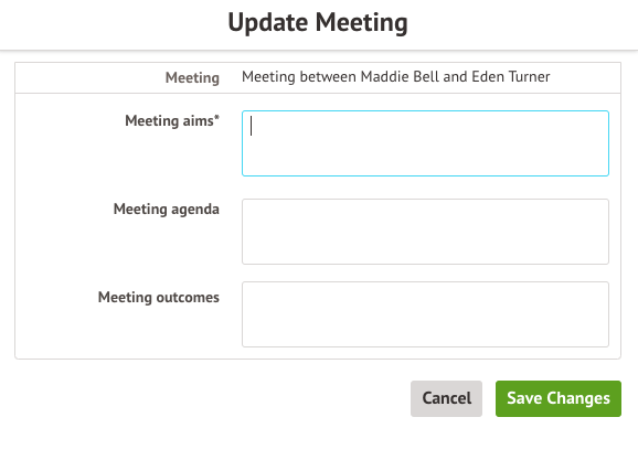 You can then view the Aims, Agenda, Outcomes, as well as the Private and shared notes.