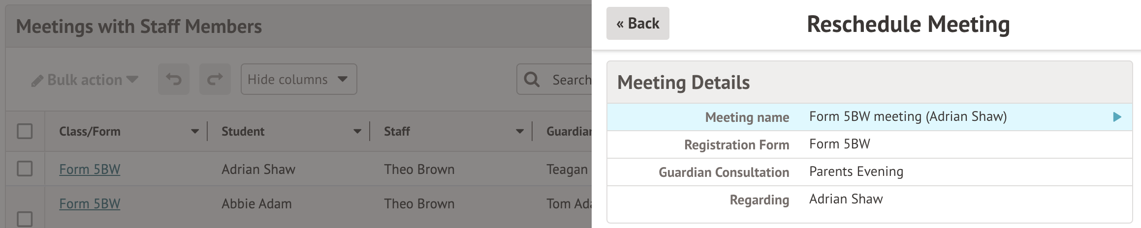 - For guardians booking meetings, adding notes and using guardian consultations please see this article: Booking Guardian Consultations (Parent's Evenings) on the Parent Portal or Parent App