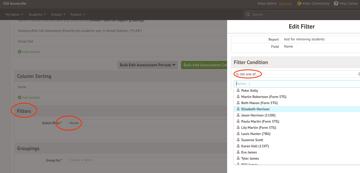 - Static Groups - In Arbor, you would manually add or remove students from the Custom Group.