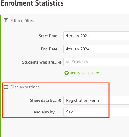 To replicate the Class Numbers report in ScholarPack, you can also choose to display by Sex.