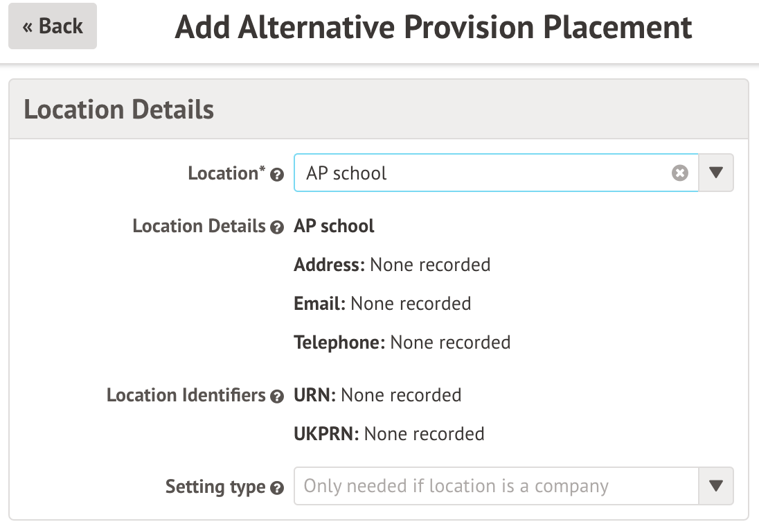 For full guidance on recording this information, please take a look at this article: Recording Alternative Provision placement details