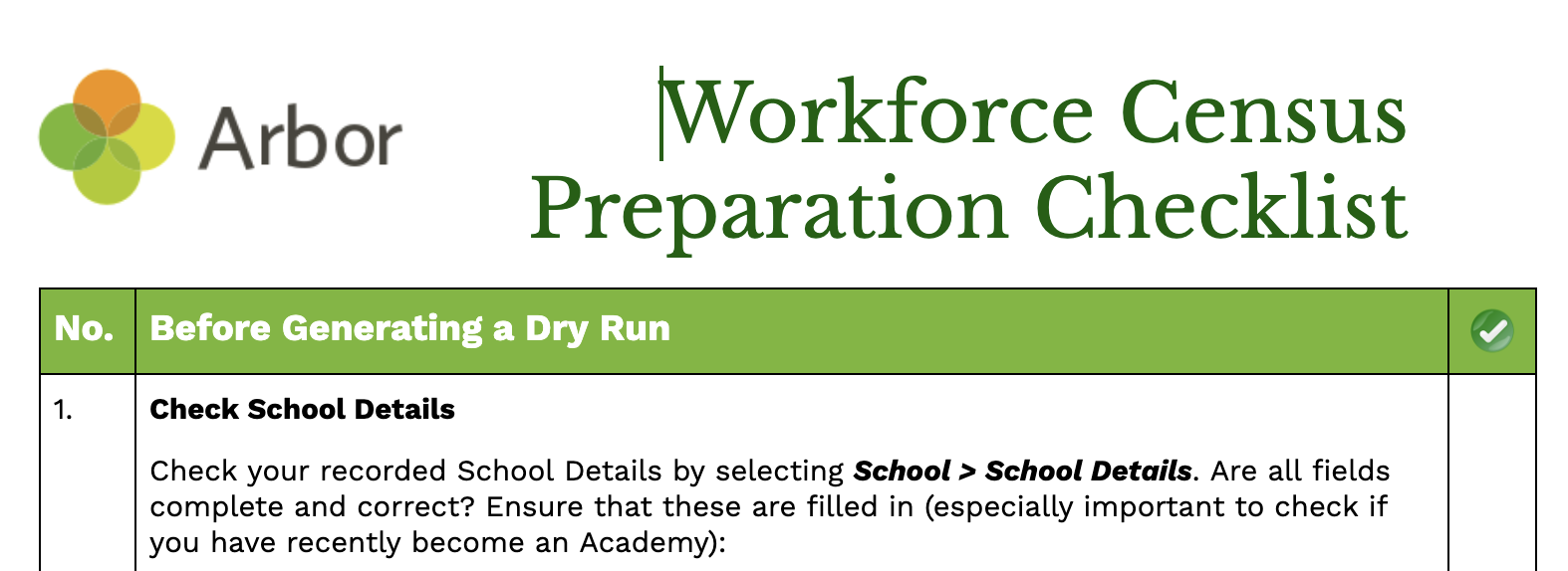 Before generating your dry run, go through this checklist. It will help eliminate a lot of the most common errors and queries schools encounter on the dry run.