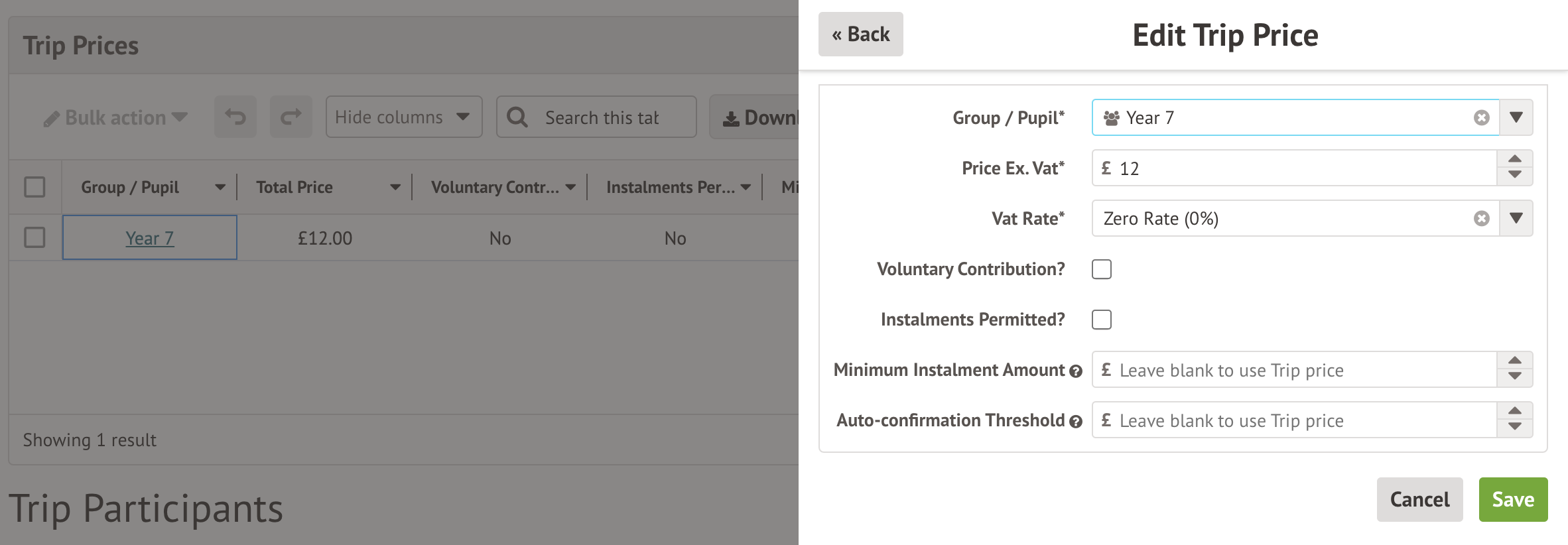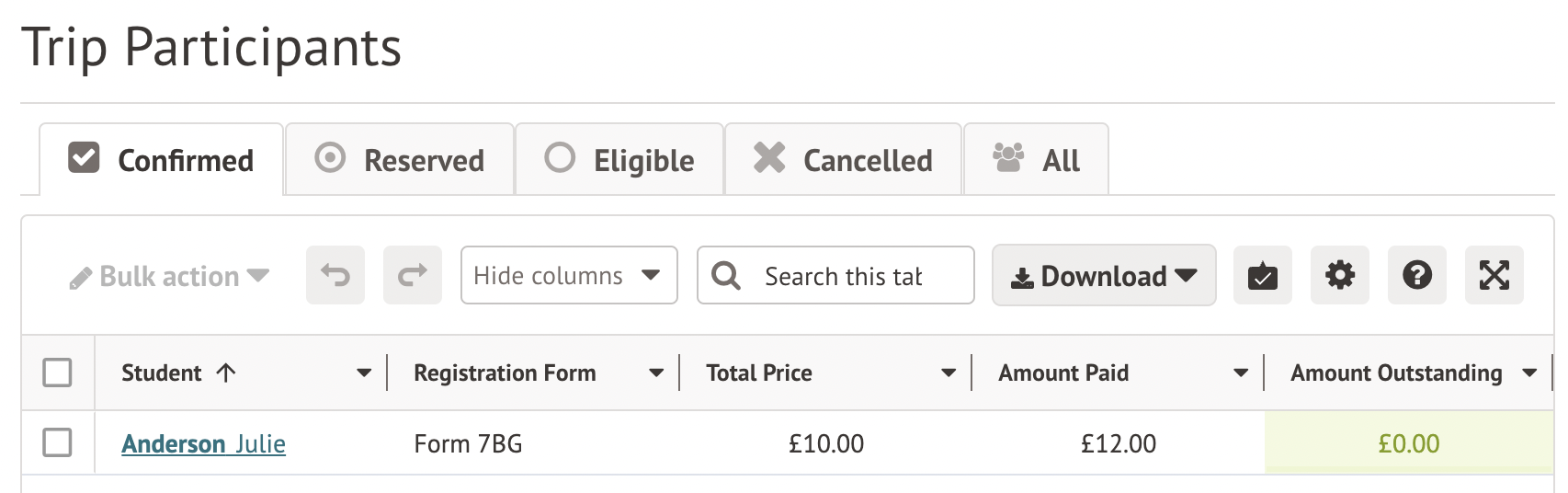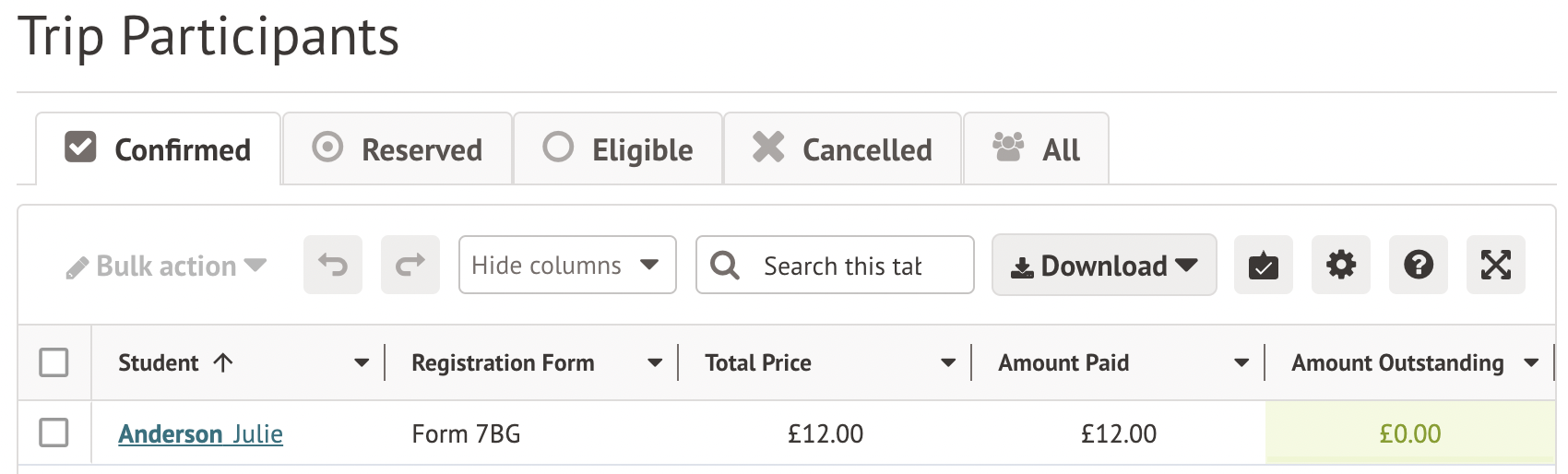 However, when trip prices are changed, or if Voluntary Contribution is switched on or off, students who have already paid will not have their invoice changed or price updated. This is why we recommend: