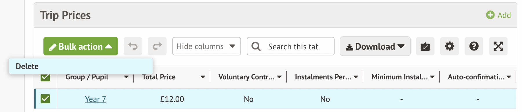 To delete a price, go to School > Activities > Trips. Click on the trip then select More information.