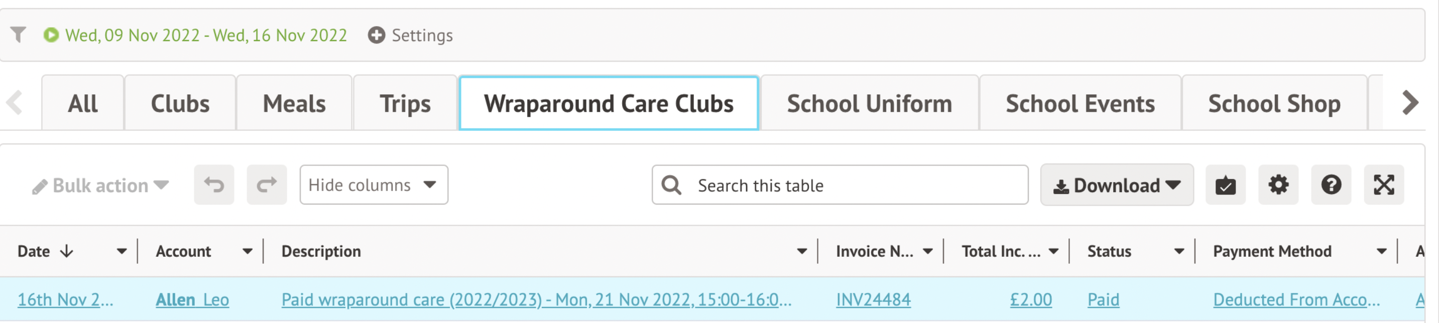 Please note that the invoices and payment details for students already booked on will still be there in the background.