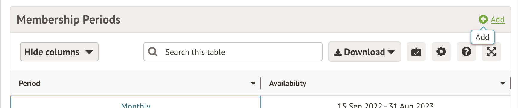 You'll want to do this to remove the membership period from the parent portal and stop parents from booking this into next term. This is because you can't change the availability dates the period runs to once it has started. - Under Membership Periods, click +Add.