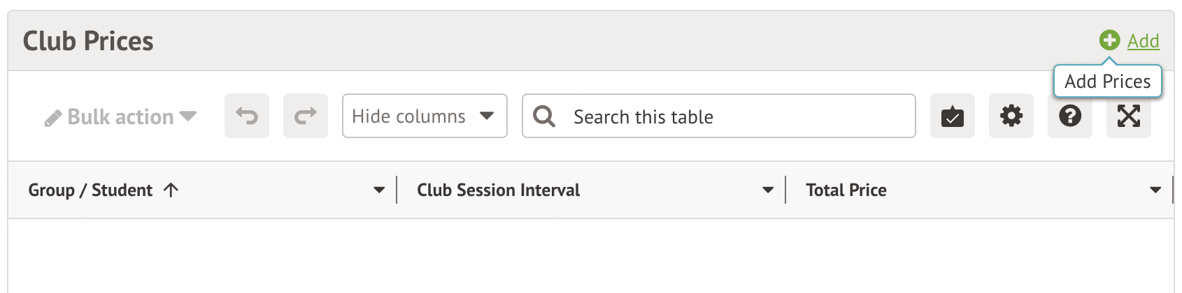 In the Club Prices section, click +Add to add an additional price for a different groups of students, or click on the existing price to edit it.