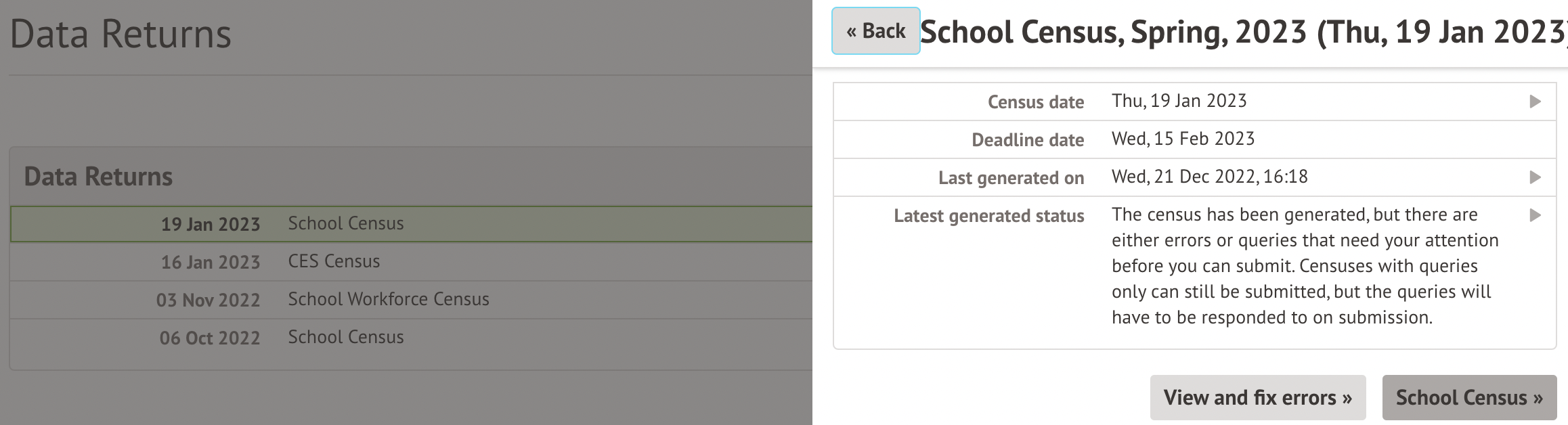 3. Click the School Census button.