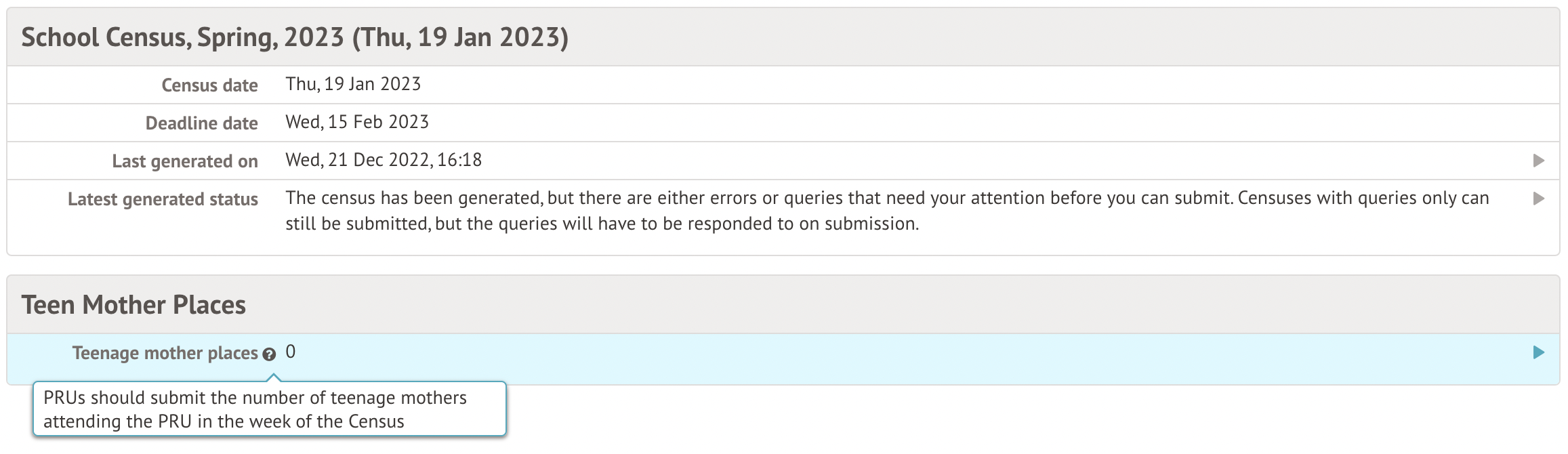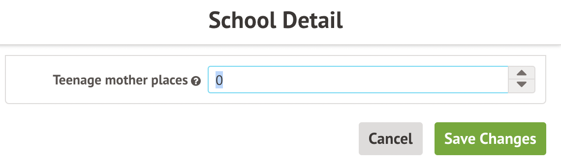 - Teenage mother places - How many places for teenage mothers a pupil referral unit or alternative provision has.