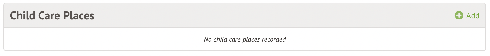 - For each type of childcare, you must add the type to the Child Care Places section by clicking +Add.