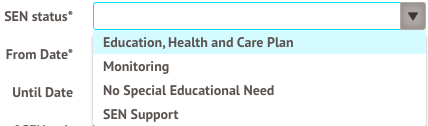 - Select the relevant SEN status (what options you see and what codes these correspond to are listed below) and click Set SEN Status.