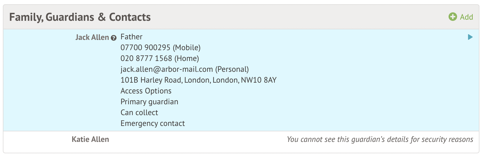 Scroll down and click your name in the Family, Guardians & Contacts section.